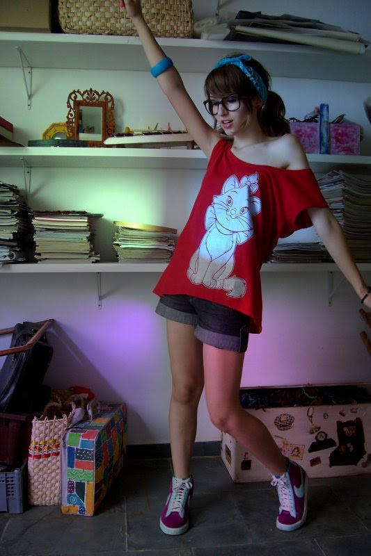 Zá Scalon, uma das mais estilosas Capricho, combinando um shorts jeans com uma T-shirt divertida e um tênis. Básica e estilosa!